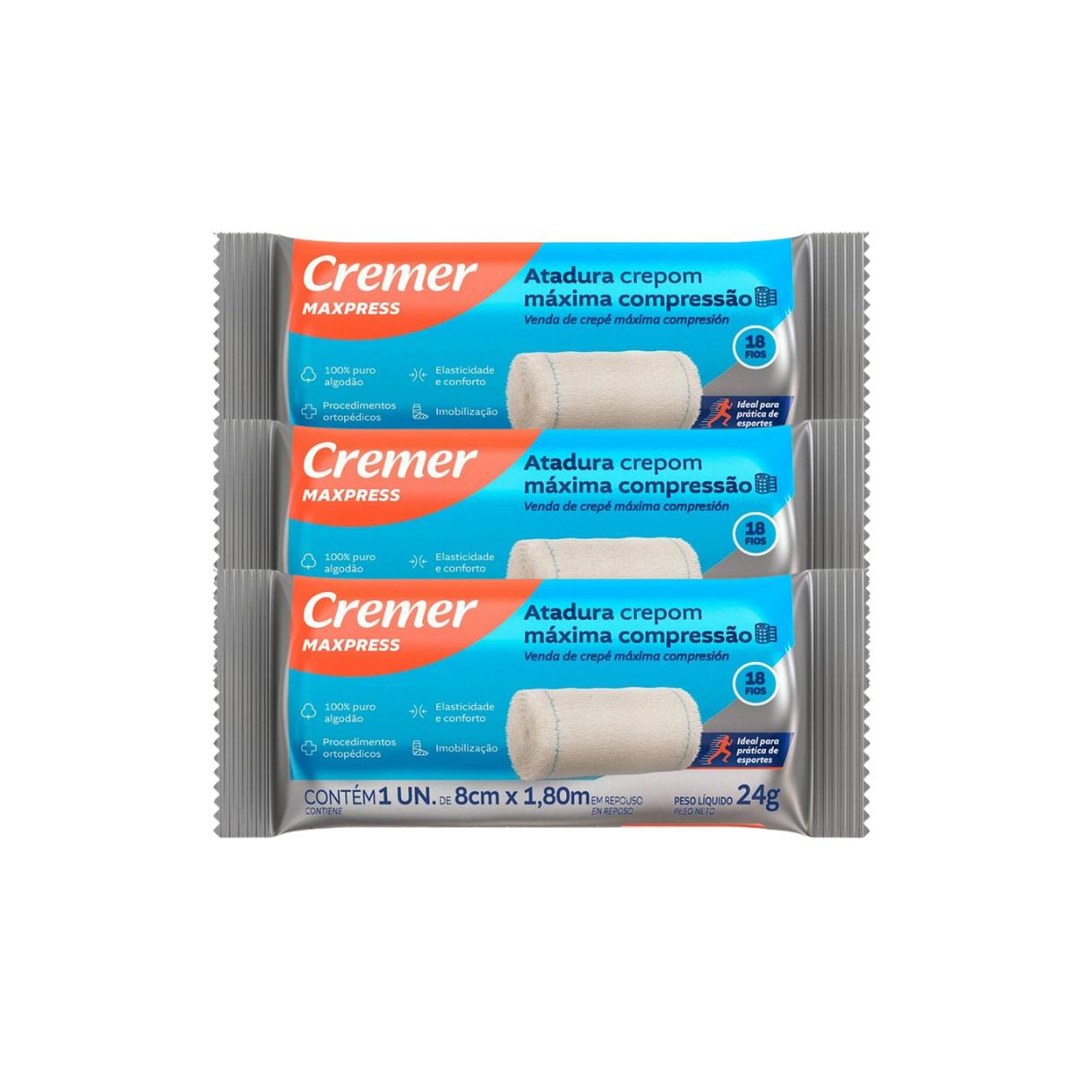 3 Atadura de Crepom Alta Compressão 1,80m x 8cm Cremer