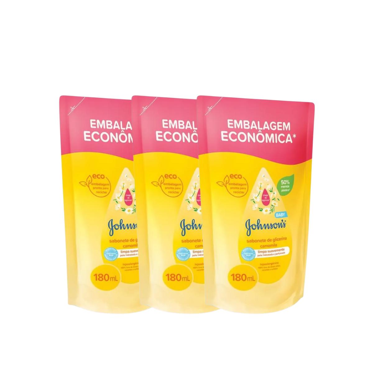 3 Refil Sabonete Líquido Glicerina Camomila 180ml Johnson's