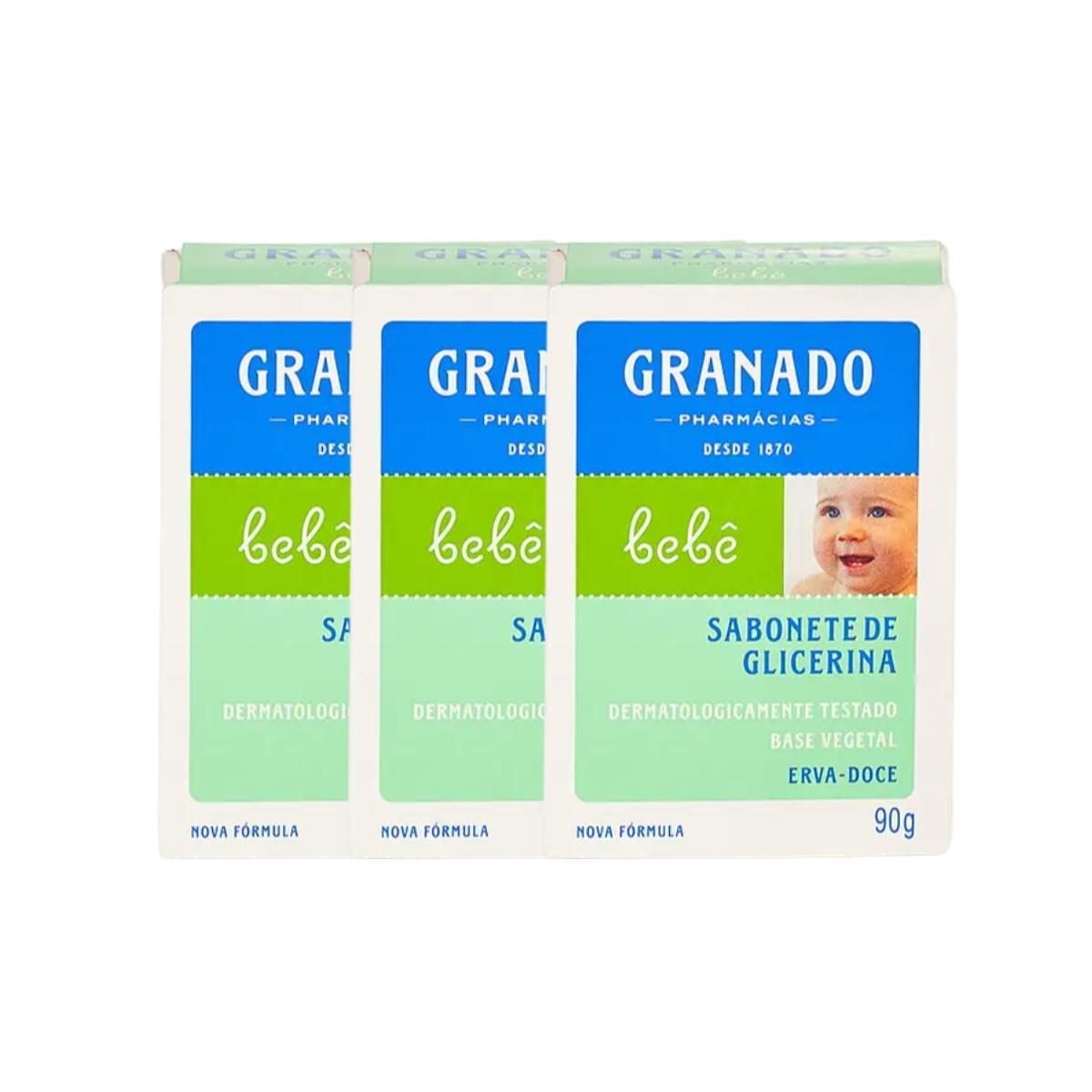 3 Sabonete Barra de Glicerina Granado Bebê Erva-doce 90g
