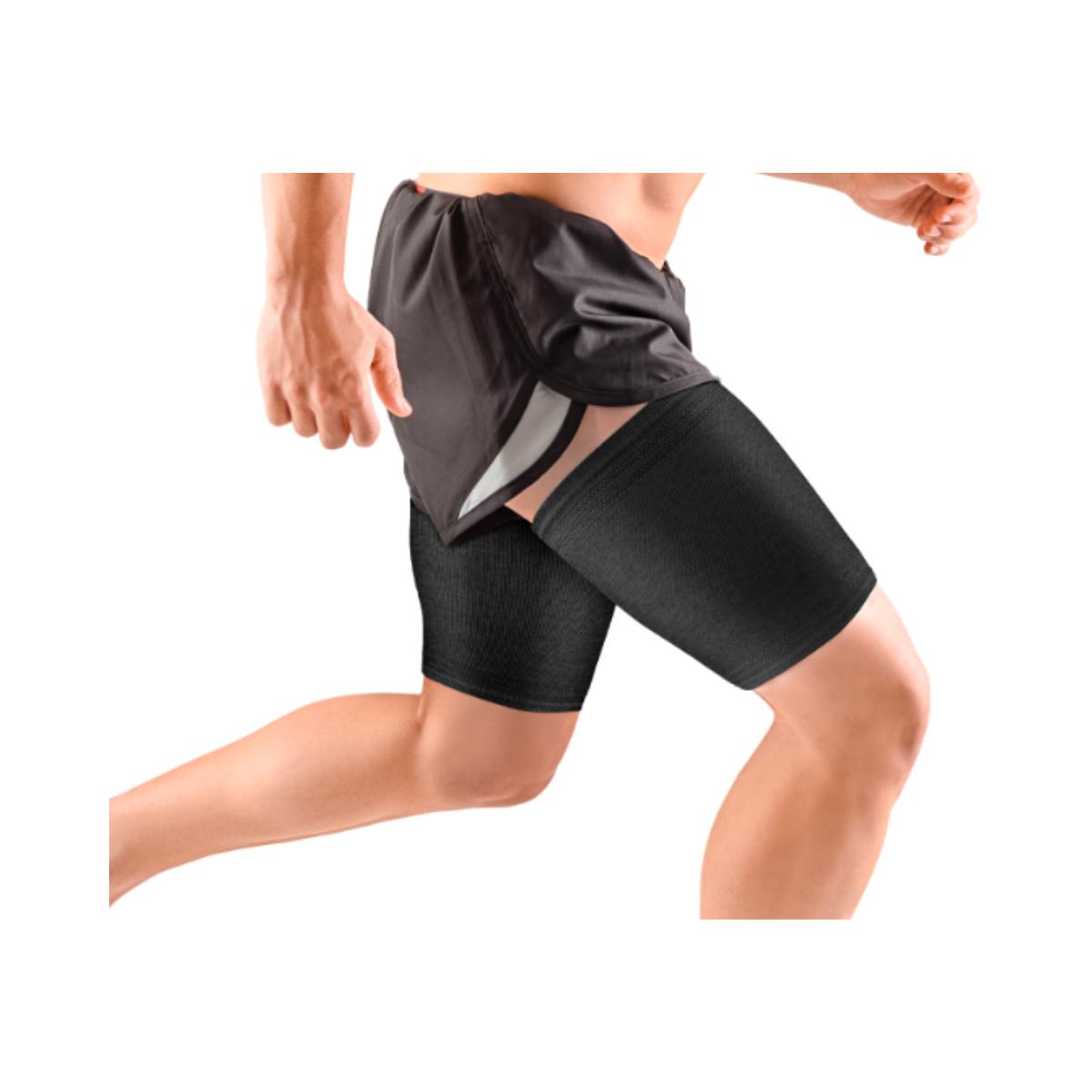 Vestir o produto através do orifício superior, puxando-o até que fique na posição desejada e confortável na coxa.