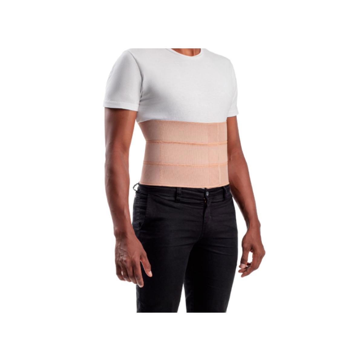 Com um design inteligente de três painéis elásticos, a faixa se adapta ao corpo de forma anatômica, garantindo uma compressão uniforme em toda a área do abdômen. Essa compressão é fundamental para: