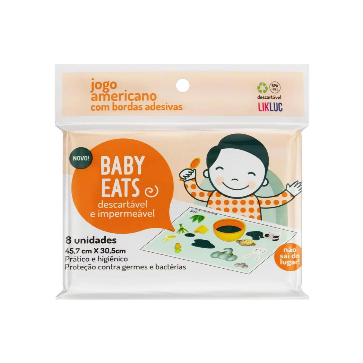 Com o Baby Eats, você conta com adesivo nas bordas, que impede que o material deslize na superfície onde for colocado para a criança se alimentar. Ainda possui desenhos lúdicos e coloridos para incentivar a criança a se alimentar, mantendo-a focada na refeição. Após o uso, basta descartar o jogo americano no lixo reciclável.