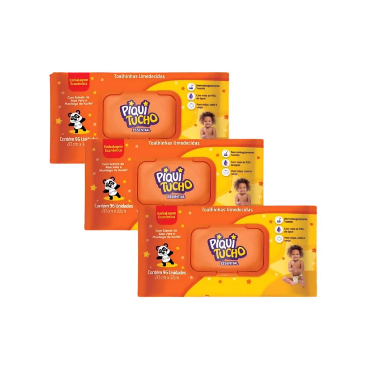 Kit 3 Toalha Umedecida Piquitucho Essential 96 Unidades Cada
