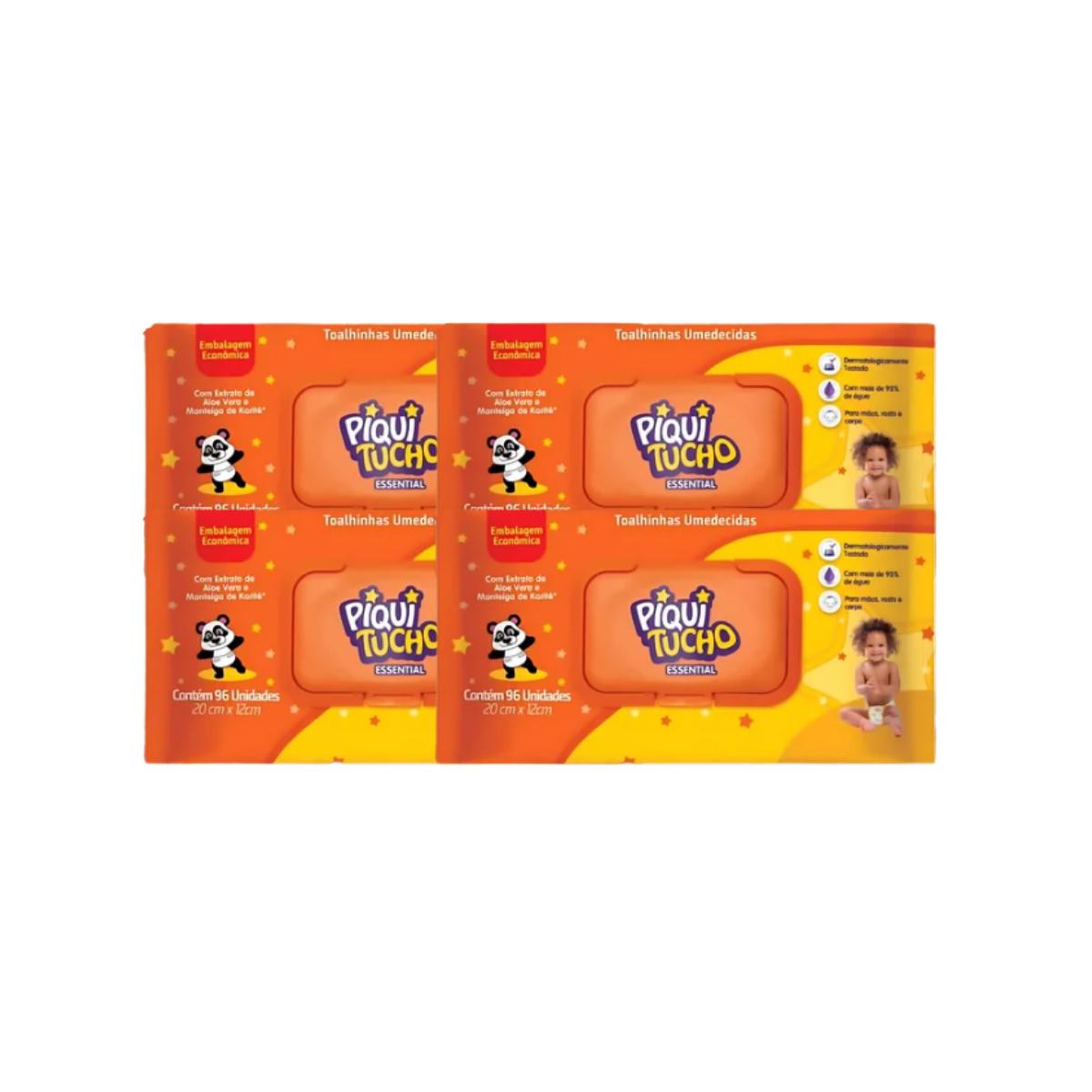 Kit 4 Toalha Umedecida Piquitucho Essential 96 Unidades Cada