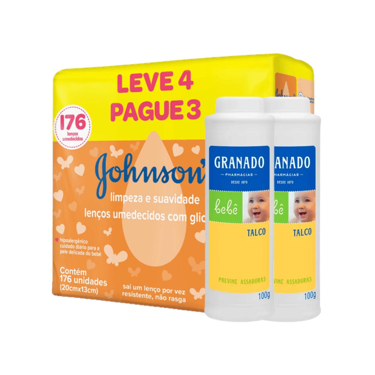 Kit Lenço Umedecido Johnsons 2 Talco Para Bebê 100g Granado