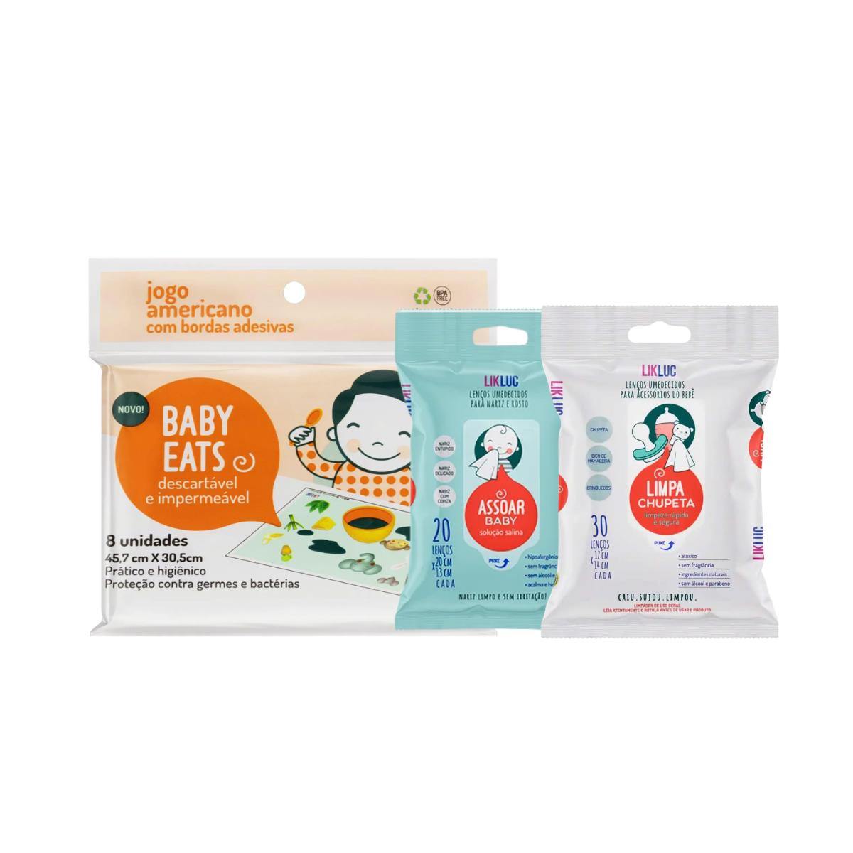 Com itens práticos e funcionais, o kit de cuidados da Likluc permite que a assepsia do bebê seja feita em qualquer lugar: praça do shopping, parque, restaurante, consultório médico e outros ambientes. A melhor parte é que ele leva três produtos que já ganharam o coração das mamães: Baby Eats, Assoar Baby e Limpa Chupeta.