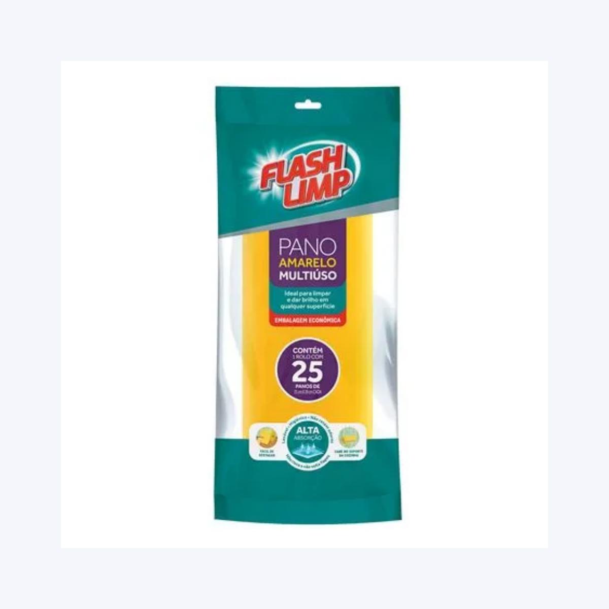 Rolo Com Pano Amarelo Multiuso 25 Peças Flash Limp